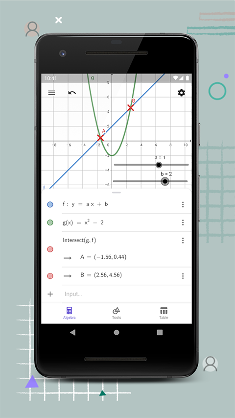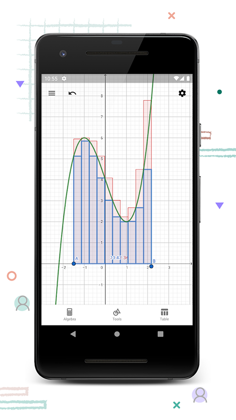 GEOGEBRA图形计算器是一款将几何、代数、表格、图形、统计和微积分整合于一体的动态数学软件,完美继承了电脑版的核心功能,让数学探索变得随时随地。不仅仅是一个计算工具,更是一个交互式学习平台,学生、教师和数学爱好者都可以通过直观的方式,可视化和理解从小学到大学的数学概念。通过触控操作,用户能够直接创建、拖动和变换几何图形,而相关的代数方程也会同步变化,实现数形结合的实时互动,让抽象的数学变得生动具体。