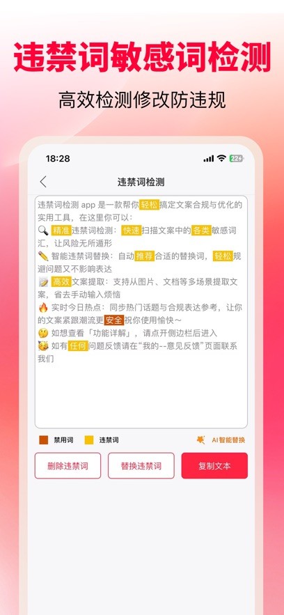 1、能够高效地检测文本中的敏感词和违规词,并提供精准的提示。