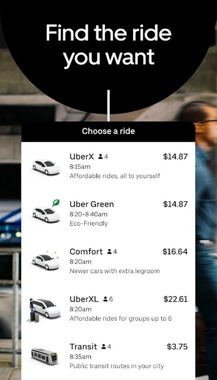 uber安卓版让用户能够来安心的用车,随时随地来叫车不需要多余的等待,包含了经济型、豪华型等各种不同的车辆来选择,系统会严格的考察每一位司机的背景,这样确保乘车用车的安全,还可以享受安全的出行服务,通过透明的计价方式让用户用车更加的省心,依靠系统评价对于每一位车主来做出你们的服务。