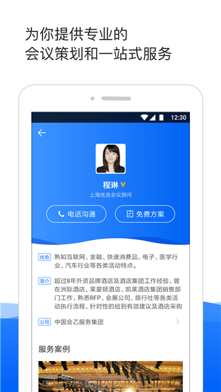 1、整合了多种服务资源,满足在会议筹备过程中的所有需求,省时省力。