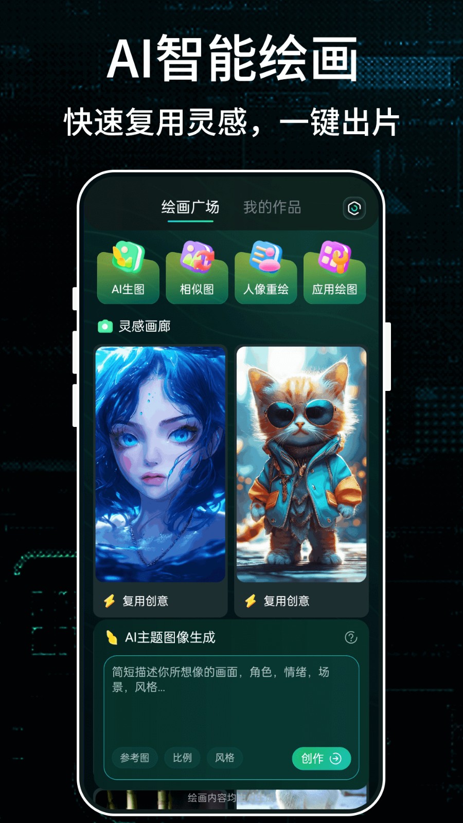 1、碎片化创意捕捉,用手机便携特性随时记录灵感,输入简短中文提示词快速生成草图,留存创意火花。