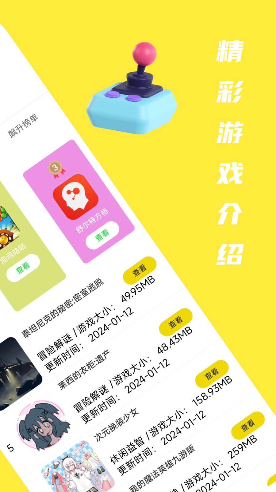 2、点击榜单按钮,游戏还会根据热门榜单进行排序,排名靠前的都是玩家多的游戏;