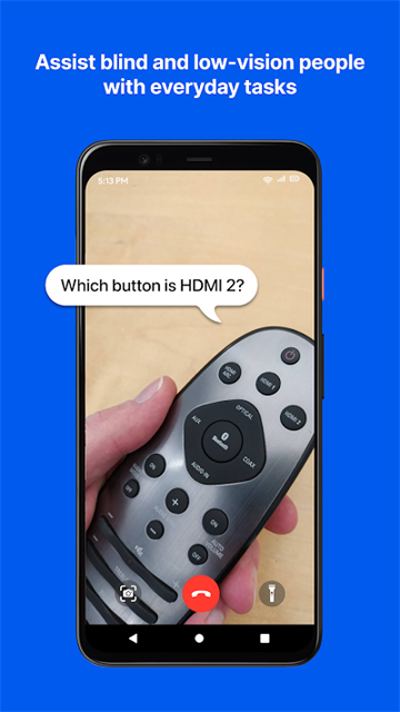 Bemyeyes这是一款针对盲人或视力不佳人群的手机app。它构建一个志愿者网络平台,让用户与志愿者可以实时音视频连接,借助后置摄像头将用户所需帮助的情形呈现给志愿者。 这款软件使用极为简单。盲人或视力欠佳的用户若需帮助,只需发出请求,等待志愿者回应即可。一旦有志愿者接到请求,就能可以建立实时音视频连接。志愿者可透过后置摄像头查看状况,进而通过语音为用户提供指导与支持。若该志愿者无法提供帮助,还能够将请求转至其他志愿者,确保用户及时获得援助。