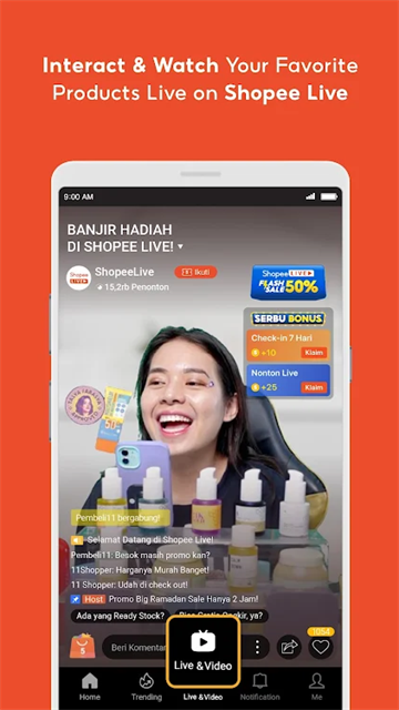 1.面向消费者端,虾皮应用的核心体验亮点在于其高度互动化、游戏化与社交化的移动购物设计。