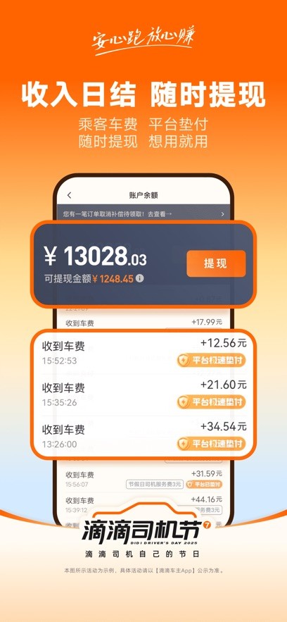 4、收入结算透明,每笔订单收入实时更新,提现流程便捷,资金安全有保障。