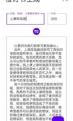 1、AI智能生成,先进算法快速生成符合场景的检讨书,逻辑清晰,情感真挚。