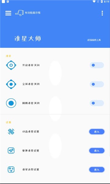 1、进入到准星大师主页面,点击开启准星,可以进行对应的设置了;