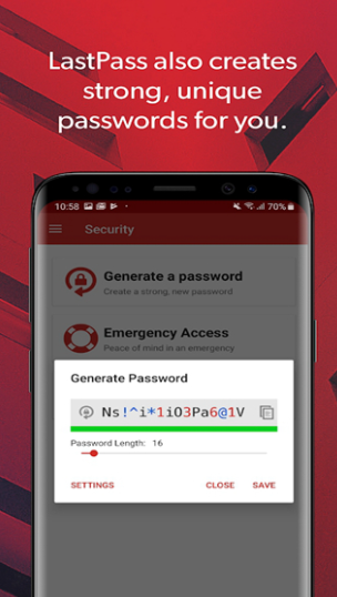 4.内置的强密码生成器可以根据需求创建复杂、随机的密码,并且自动将其保存至保险库对应的条目中。
