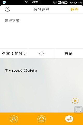1.在进入旅行翻译官之后,对下方的旗标图标进行点击,就能够说话并且实现实时翻译。