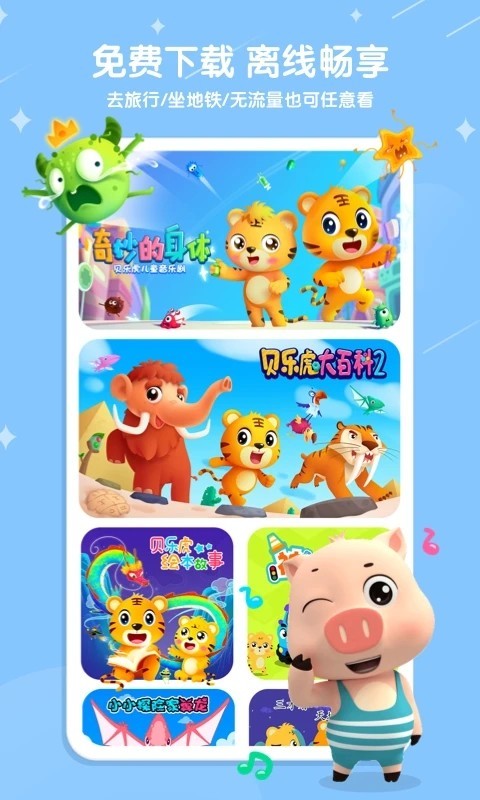 1.该应用的核心价值基础是其精心编排、数量庞大的高品质儿歌动画与启蒙教育视频内容库。