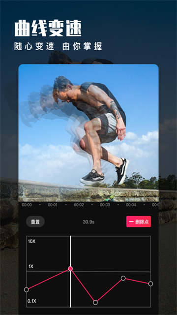 2、支持曲线变速调整,可制作加速变声、慢速鬼畜等趣味效果,让视频更有看点。