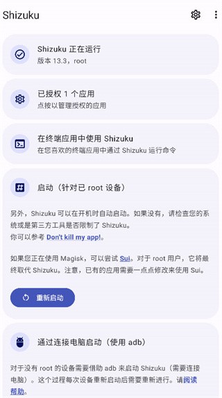 1、打开shizuku软件,并且等待该软件识别手机型号。