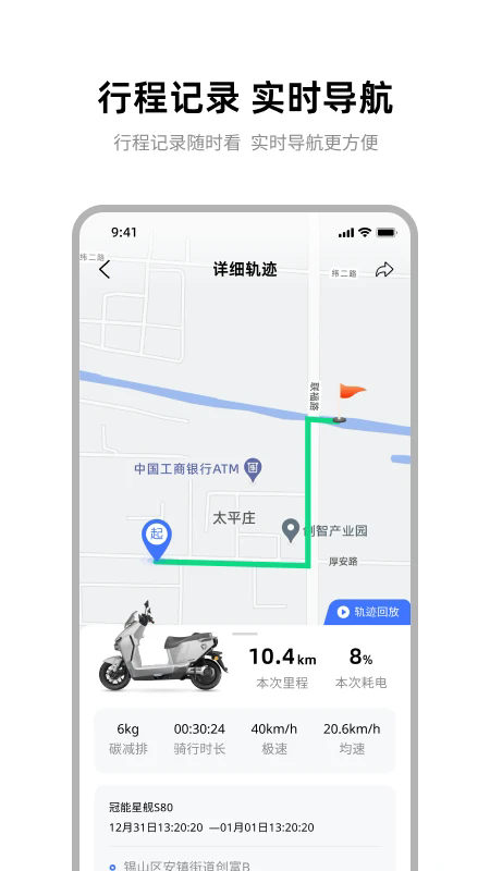 1. 轨迹记录模块会完整留存每一次的骑行路线,使用户随时都能回顾美好旅途,掌握出行习惯。