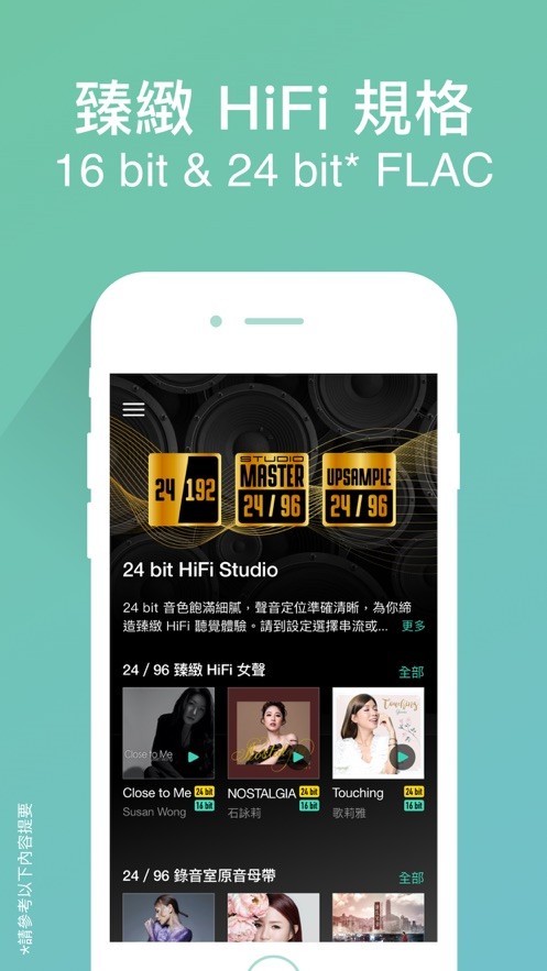 1.提供包含录音室原音母带及升频版本的24bit无损串流音质,带来顶级听觉享受;