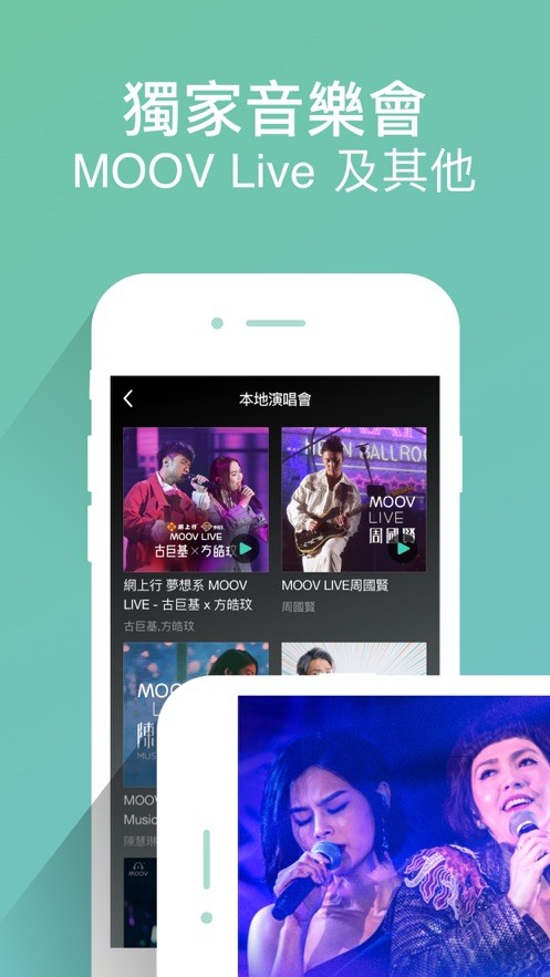 5.独家MOOV Live音乐会模块可让用户在线欣赏人气歌手未出碟新歌的现场演绎,拉近与乐迷的距离;