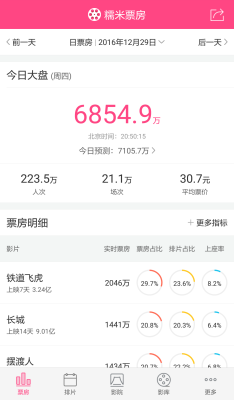 3. 秒级票房功能可从大盘到影片随时捕捉数据增量,通过提供十余项核心指标对影片票房质量进行全面剖析。