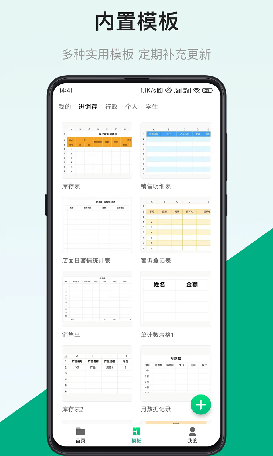 2.表格内置精美模板,可快速制作统计表、考勤表,且文档格式完美兼容。