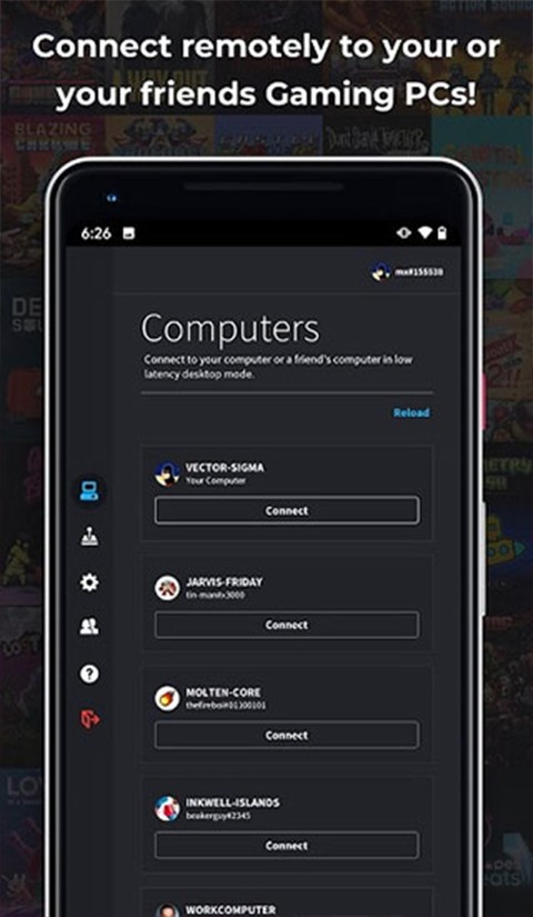 4.游戏库一键启动功能集成了Steam、Epic Games Store等平台,可直接从Parsec打开游戏,无需重复登录。