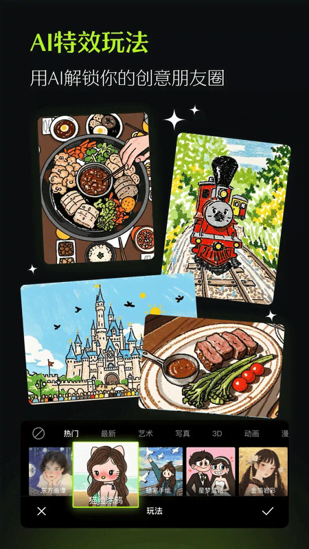 5.包含魔法消除、逆光矫正、AI老鼠干特效等,带来百变玩法与不断惊喜的AI创意功能;