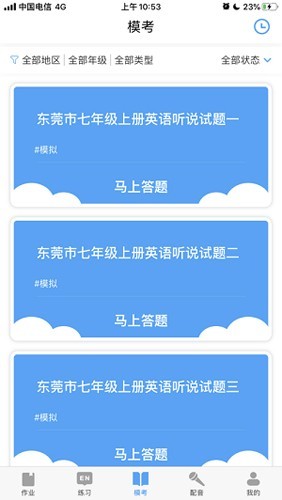 2.智能模考系统提供全真英语听说模拟测试环境,帮助学生适应机考日常训练;