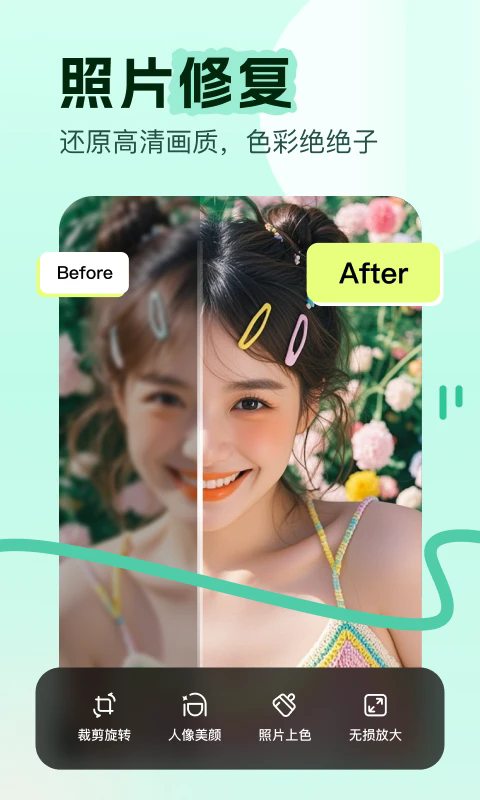 1.去水印与修复工具可精准清除画面中多余元素,恢复照片的原始美感;