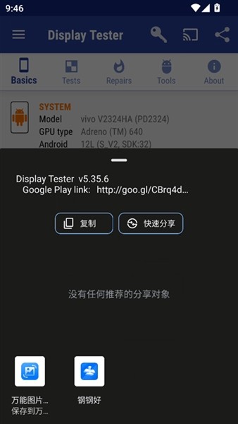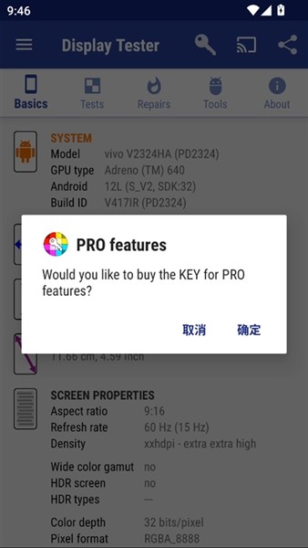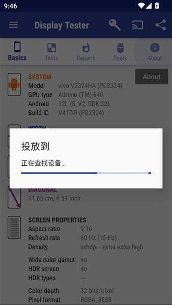 DisplayTester是一款专业的移动端屏幕检测与硬件信息查询工具。覆盖了从基础物理参数读取到高级色彩校准的全流程,能够精准识别屏幕坏点、检测色彩饱和度与对比度表现、评估多点触控响应精度以及进行伽马值校正。针对OLED屏幕特有的烧屏现象,高亮度扫描线或噪点模式的修复机制,通过像素点均匀老化来缓解残影问题。displaytester支持全屏沉浸式测试,用户仅需简单的滑动手势即可切换测试项目与调整亮度,无需复杂设置即可获取详尽的屏幕规格数据。