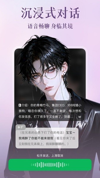 1、文字情境剧情多种模式,自由切换互动方式,点进场景即可展开有故事感对话。