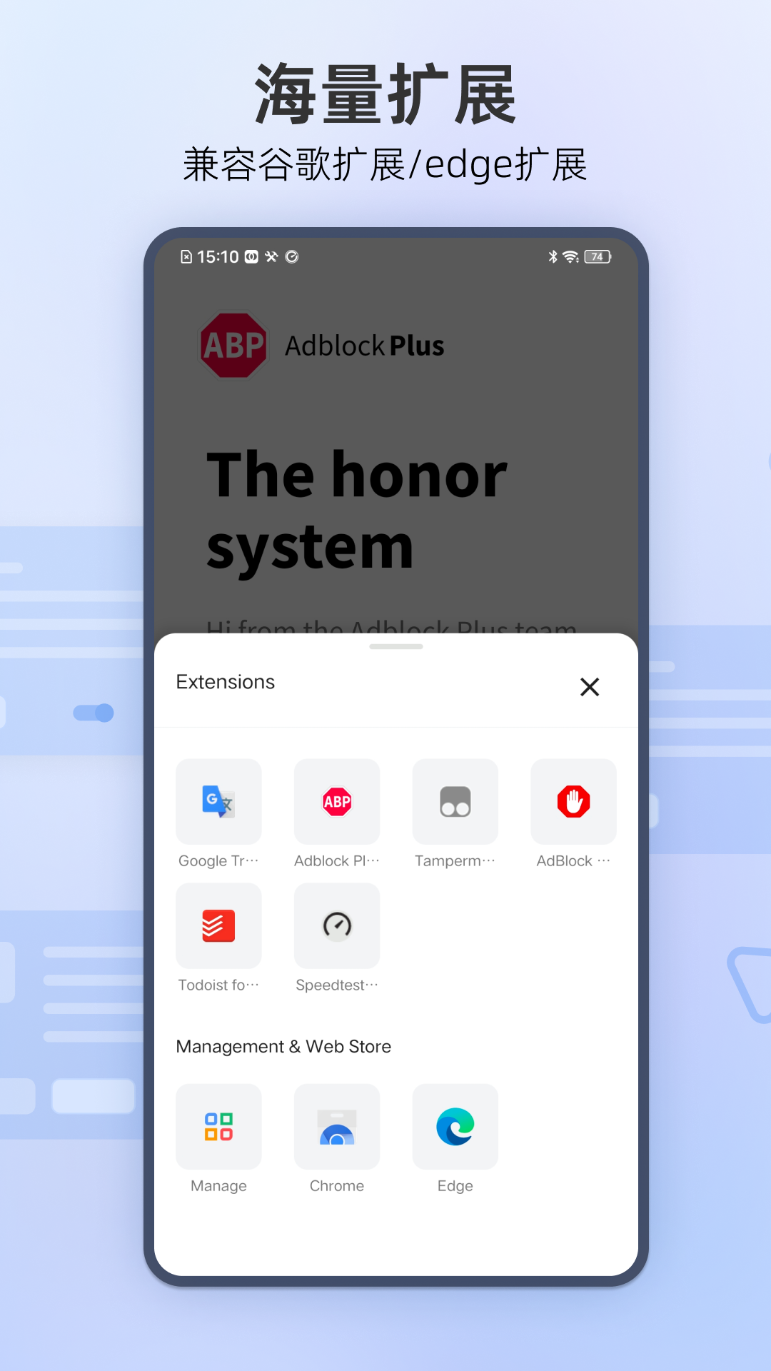 3、全面兼容Chrome与Edge扩展商店,支持直接安装各类插件与脚本。