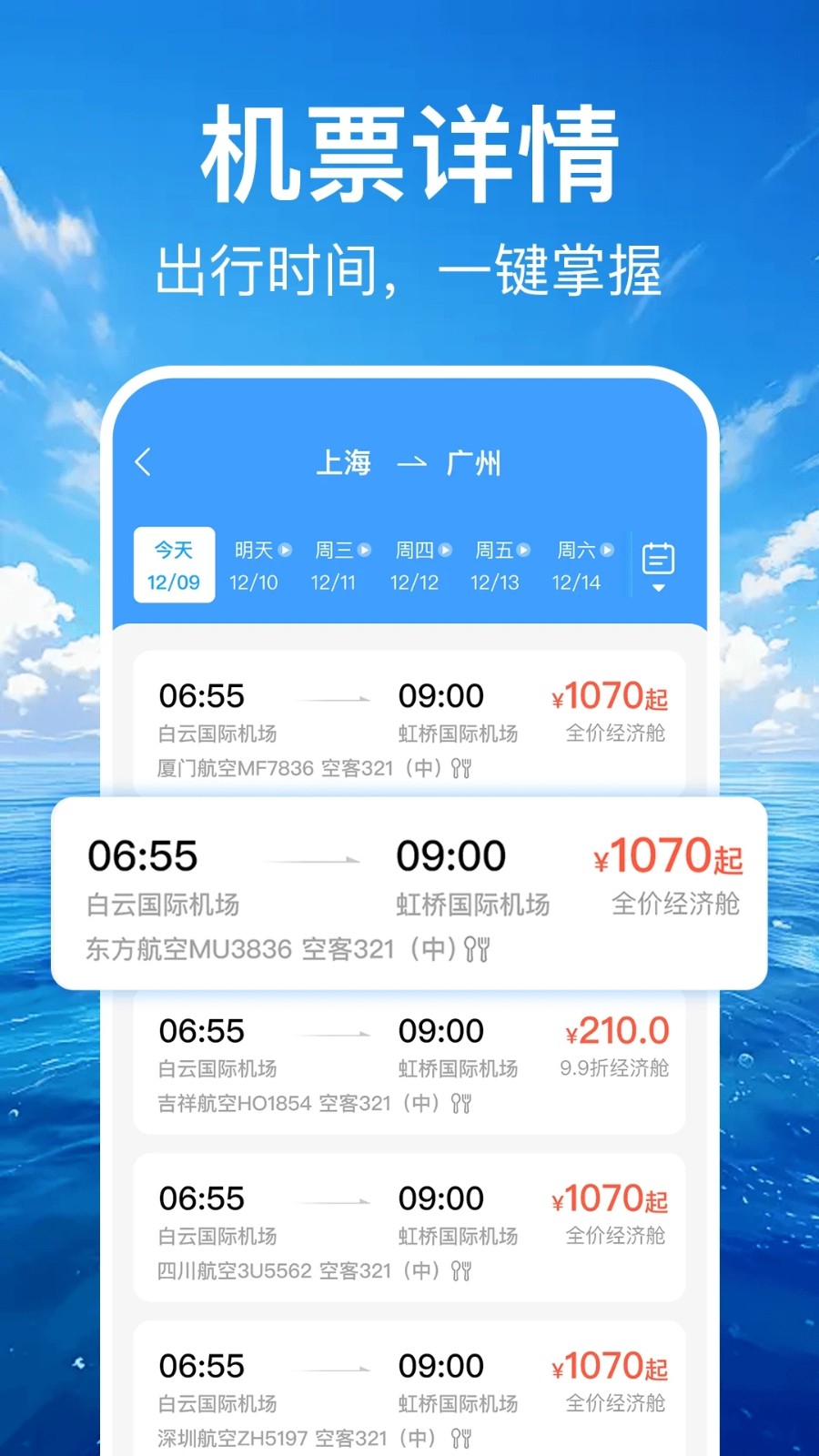 特价机票管家是一款专为旅客设计的航班比价与出行规划类手机应用。从多个航空公司销售渠道和大型在线票务平台抓取实时的机票价格、时刻、舱位等销售信息,并将这些数据进行汇总、对比和排序,为用户提供一个集中的、可横向比较的搜索结果界面。用户可以通过它,一次搜索就能看到同一行程在不同航空公司、不同代理商、不同日期下的机票报价,从而快速识别出高性价比的出行方案。其特价机票管家帮助用户在进行机票预订时,能够更高效、更透明地获取市场信息。