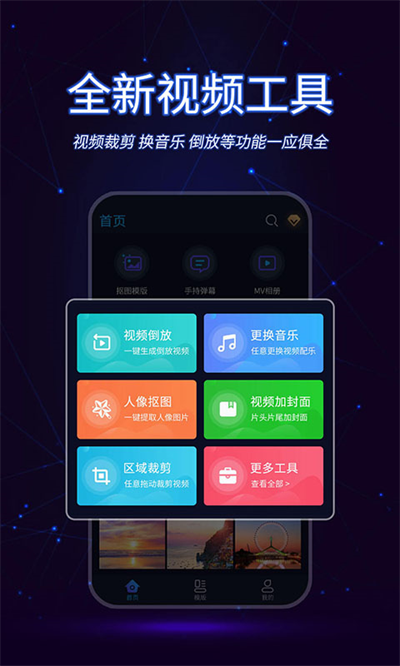 懒人视频制作专为移动端设计的零门槛视频剪辑工具,让没有任何专业基础的用户也能快速上手,轻松完成从素材到成片的制作流程。软高度简化的操作逻辑和丰富的自动化功能,将复杂的剪辑技术封装为直观的指尖操作。海量热门短视频模板,覆盖卡点、Vlog、节日祝福等多种社交场景,用户只需导入照片或视频片段,即可一键生成节奏感强、带有转场特效和背景音乐的精美短片。懒人视频制作提供了智能人像抠图、视频倒放、GIF动图制作、音乐提取等实用工具。