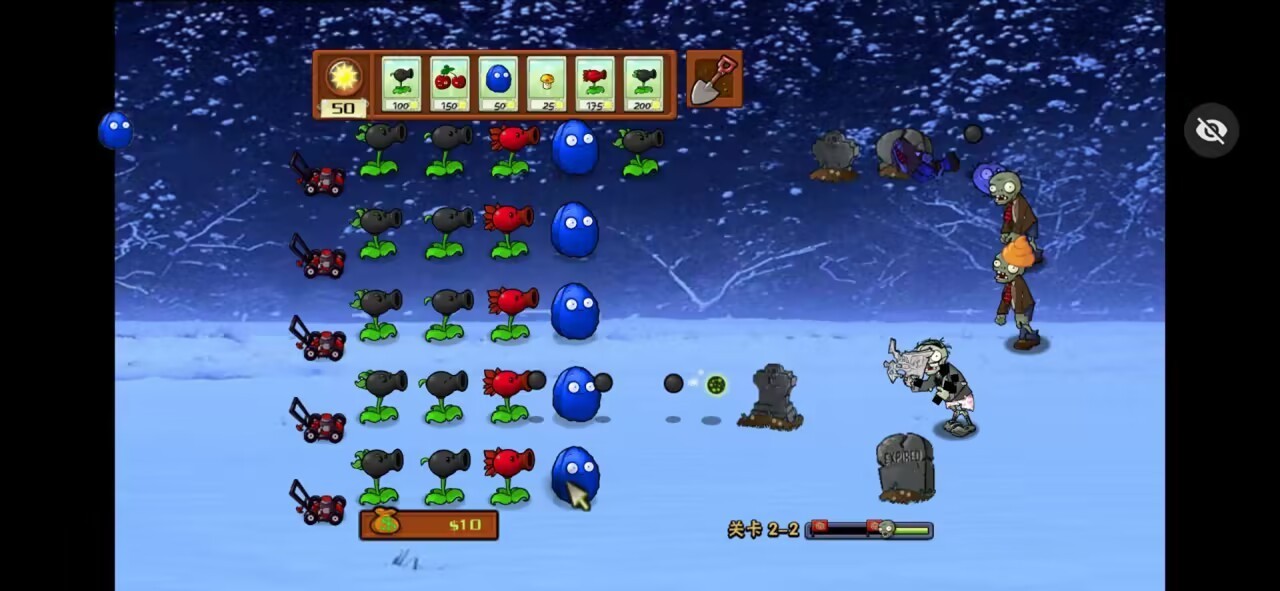 1、针对冰雪场景的僵尸特性,选择带冰冻、群攻效果的植物,优先部署在僵尸密集路径。