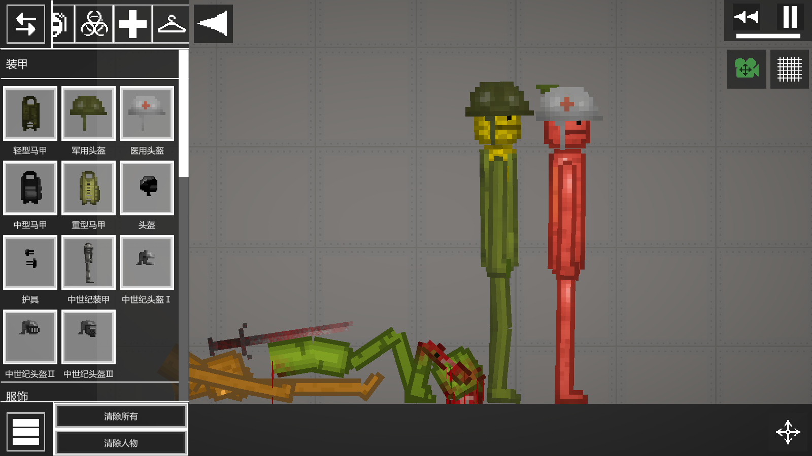 4、这里有不同的人物、武器、炸弹、刀剑、注射器、装甲等等资源供玩家们体验;