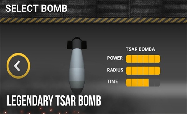 3、选择核弹类型时,依据关卡目标匹配属性,若关卡要求快速破坏小范围区域,优先选“MINI BOMB”这类半径小但时间短的核弹。若需要覆盖大范围,则后续解锁高半径属性的核弹。