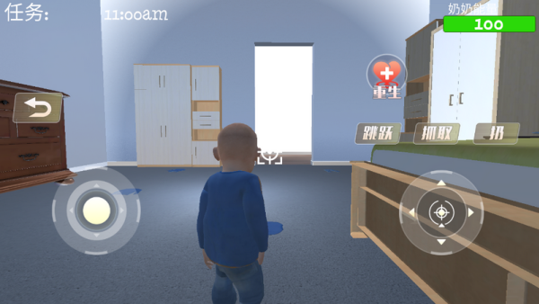1、处于户外草丛时,优先利用植被遮挡身体,减少暴露面积。移动时轻缓操作,避免触发声响吸引奶奶注意。同时留意场景中的“重生”道具,若被奶奶发现,可快速拾取该道具重置状态,继续推进任务。