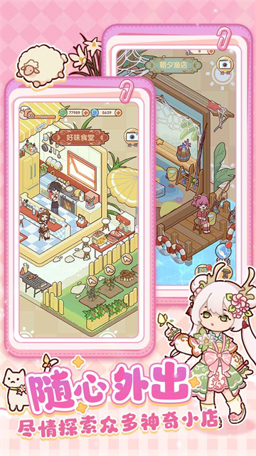 2、周边设有多样功能小店,能做菜、钓鱼、养宠,解锁店铺互动与专属故事。