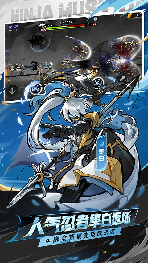 忍者必须死3最新版是一款融合横板跑酷与动作战斗的手游,以纯手绘水墨风构建出充满东方韵味的忍界世界。故事围绕三百年后忍界的内忧外患展开,武士统治腐朽引发族群冲突,鬼王余孽的谣言更让局势雪上加霜。玩家将化身个性鲜明的忍者角色,在奔跑中完成跳跃、俯冲等操作躲避障碍与攻击,收集金币积攒能量释放忍术,还能搭配不同武器技能扫清前路阻碍,参与BOSS战、3V3组队对战等多样玩法,在层层挑战中揭开事件真相,守护忍界的和平稳定,体验兼具操作乐趣与剧情深度的冒险之旅。