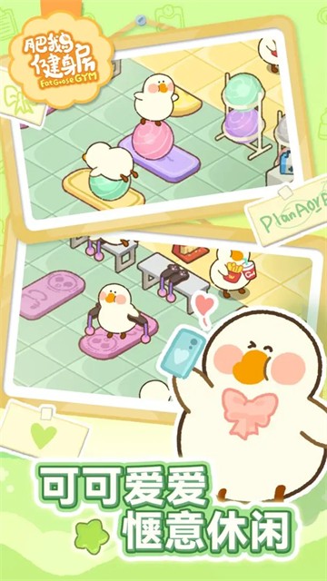 1.肥鹅角色造型圆润可爱,健身动作憨态可掬,搭配色彩鲜亮的场景与生动特效,营造沉浸式治愈体验。