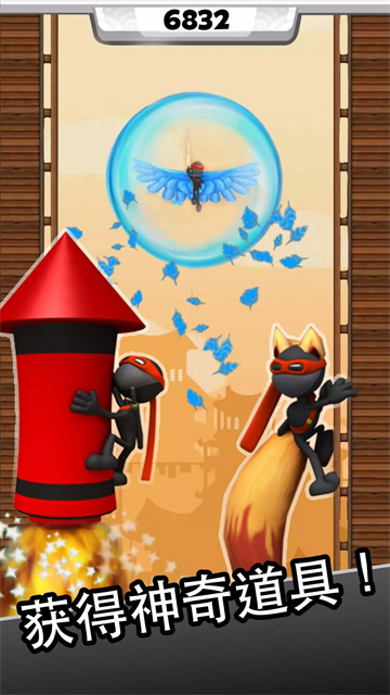 3.连续击打三只飞鸟时,人物能化做一只飞鸟往上飞,连续击打三个火药包,人物能抓住大火箭筒往上升。火药包接近人时会爆炸出现四个飞镖,时机抓得好的话可以一次性化成飞镖,超越分数后有个庆祝的礼花向你洒过来。