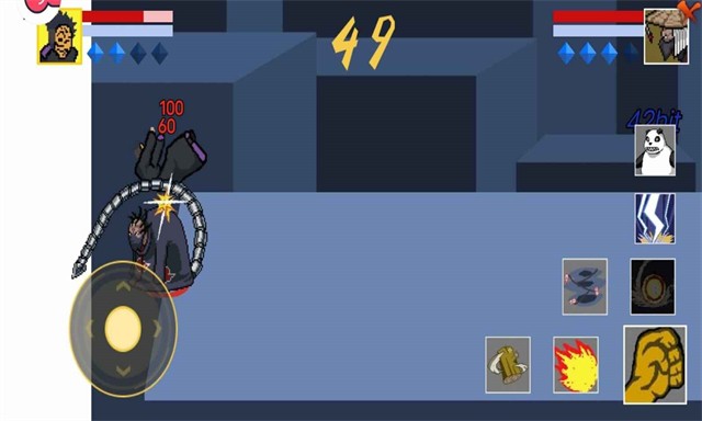 像素火影忍者全人物版是一款火影忍者题材的同人像素格斗手游,主打复古街机式的动作对决体验。游戏完全依托动漫设定,还原了海量原作角色,每个角色都搭载专属技能招式。从基础攻击到奥义大招,都高度贴合动漫中的表现形式。玩家操控角色时,左侧界面负责移动方向,右侧对应技能释放,界面中央额外增设了复位、回血、回豆三类功能键,可随时调整战局状态。复位重置操作配置,回血恢复生命值,回豆补充大招所需资源。凭借操作技巧衔接技能连招,压制对手并赢得格斗比拼。