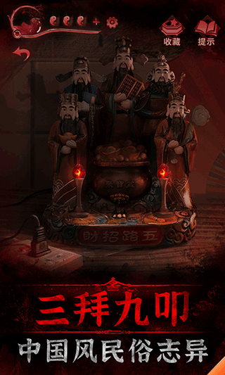 3.多个风格迥异的特色场景,涵盖稻草人诅咒区、阴婚仪式厅、异兽堂等,每个场景都暗藏独特谜题与关键道具。