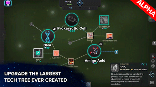 从细胞到奇点安卓版是一款由Computer Lunch开发的科普向放置挂机游戏,高清3D建模打造多元场景,从微生物视角的海洋世界到宏观视角的陆地生态,从原始部落到火星基地,场景随进化阶段同步迭代,搭配史诗级古典配乐,营造出沉浸式的时空穿越感。操作设计极简友好,无需复杂指令,点击屏幕即可收集进化资源“熵”,离线状态下资源仍持续累积,从氨基酸起步,逐步解锁海绵、爬行动物、哺乳动物等物种,解锁人类后开启文明线,以“想法”为核心资源推进时代更迭,从石器时代迈向信息时代,最终探索火星殖民与人工智能领域。