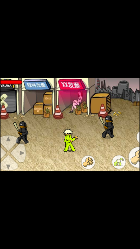 3.随着关卡推进,面对精英打手等更强敌人,观察其攻击模式,寻找弱点进行反击,使用金币升级角色的生命值、攻击力、防御力等属性,提升角色整体实力。