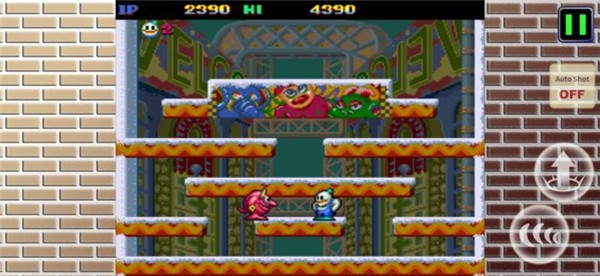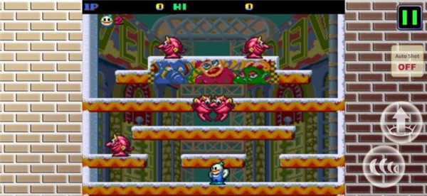 雪人兄弟怀旧版通过精准走位、道具规划挑战更高分数,关卡中随机刷新的道具与隐藏摇奖机制,为每一次闯关都增添了不确定性与惊喜感。移动端操作优化十分到位,虚拟按键布局合理,响应灵敏,避免了触屏操控对闯关体验的影响。发射雪球、推动滚动,这两个基础动作构成了玩法的全部,却衍生出无穷的变化。何时造球、朝哪个方向推、如何利用雪球清屏的同时撞击更多敌人以获得高分奖励,这些瞬间决策构成了游戏极富魅力的策略核心。