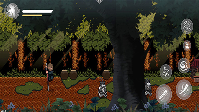 3、玩法创意迭出,喝酒增益、定身术控场、多存档点等设计,为横版闯关注入策略与休闲双重属性,吸引大家参与。