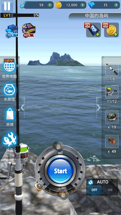 3、如果图方便的话,下方按钮可以自定捕鱼,这个是开关可以自己钓鱼或者自动捕鱼;