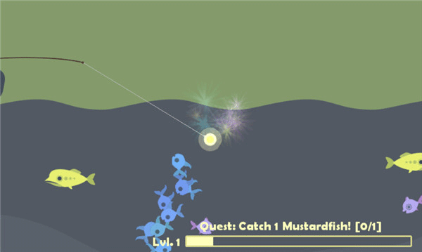 3.不同的鱼可以获得价格不等的金币,钓的鱼数量越多,则经验也会加的越多,当等级升级到2级时,点击左上角的鱼竿图标,如果说购买这个鱼竿,就可以钓上这种大鱼,如果是用这种鱼竿的话,大鱼就钓不上来,还会把你的饵料吃掉。