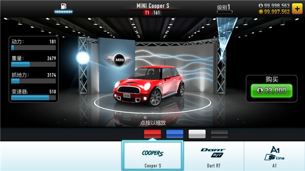 2、车辆定制,从发动机调校到外观涂装,提供上千种改装组合,性能参数可视化调整,打造独一无二的专属赛车。