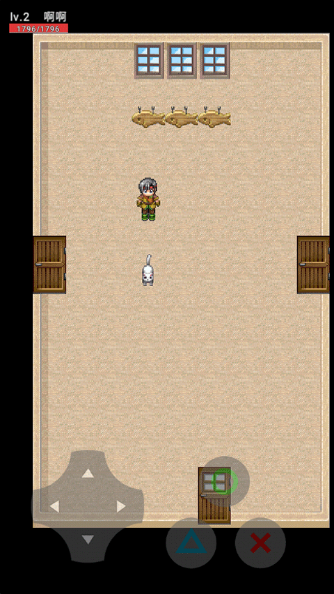 1、进入游戏,游戏采用像素风格和竖屏模式打造,左下角控制人物走动,右下角则是各种互动按键。