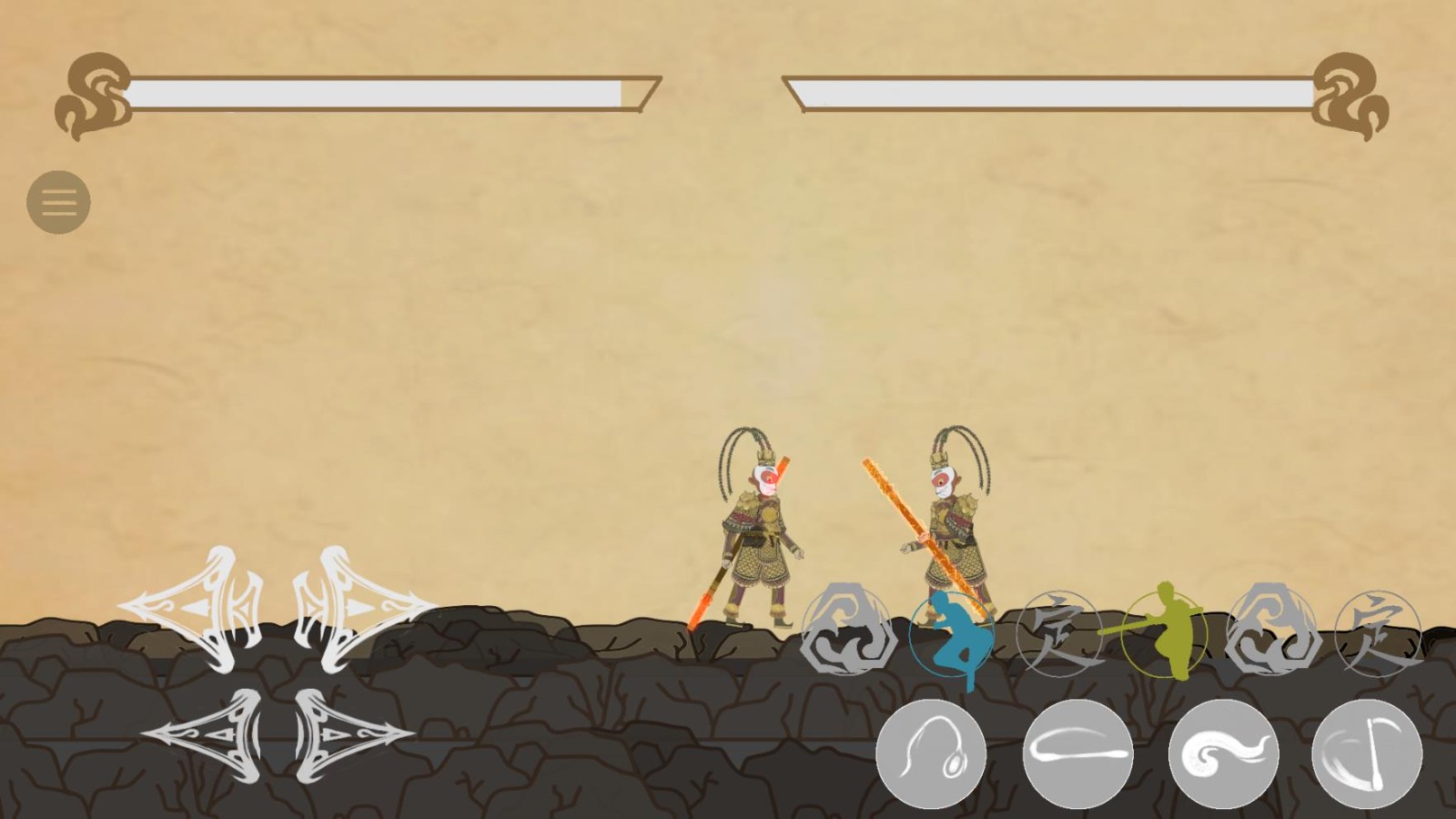 4、点击上方的圆形按钮可以施展三种不同的棍法、金刚不坏和定身术,同时消除的圆形按钮越多招式威力越大。