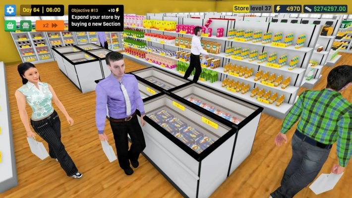 3、自由建设以及扩张,从店铺布局装修到开设连锁分店,玩家可随心打造个性化的超市商业版图。